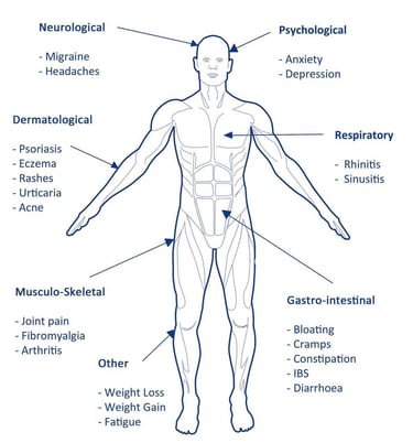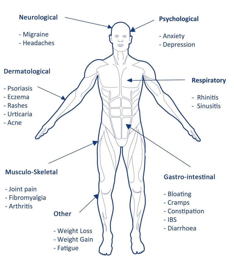 What symptoms can food intolerance cause?